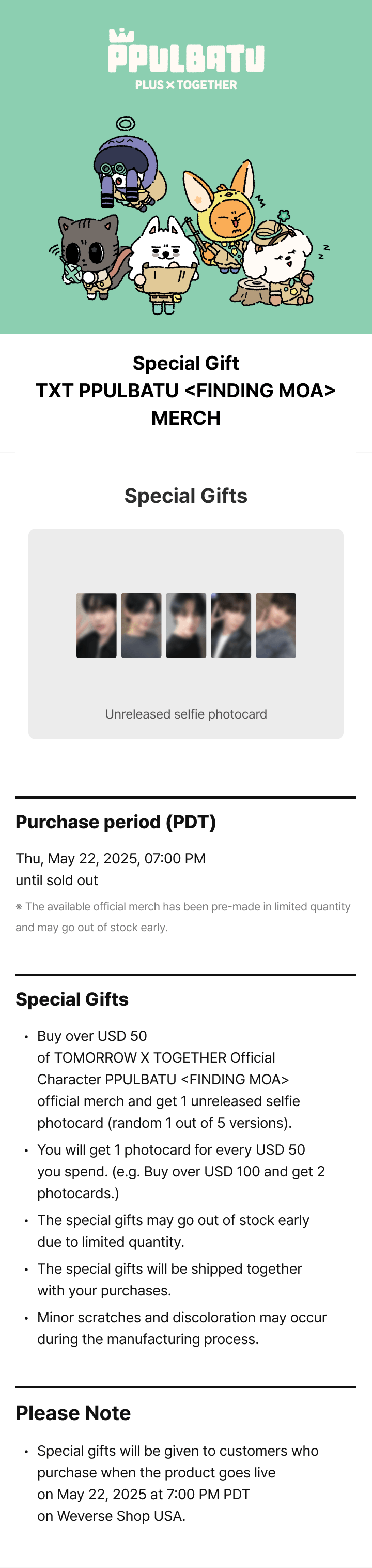Some products sold on Weverse Shop are offered by individual sellers who use Weverse Shop as their selling platform. Regarding products sold by individual sellers, Weverse Company Inc. is not a party to the e-commerce transactions but an e-commerce intermediary, holding no responsibility for the information or transactions regarding the listed products.