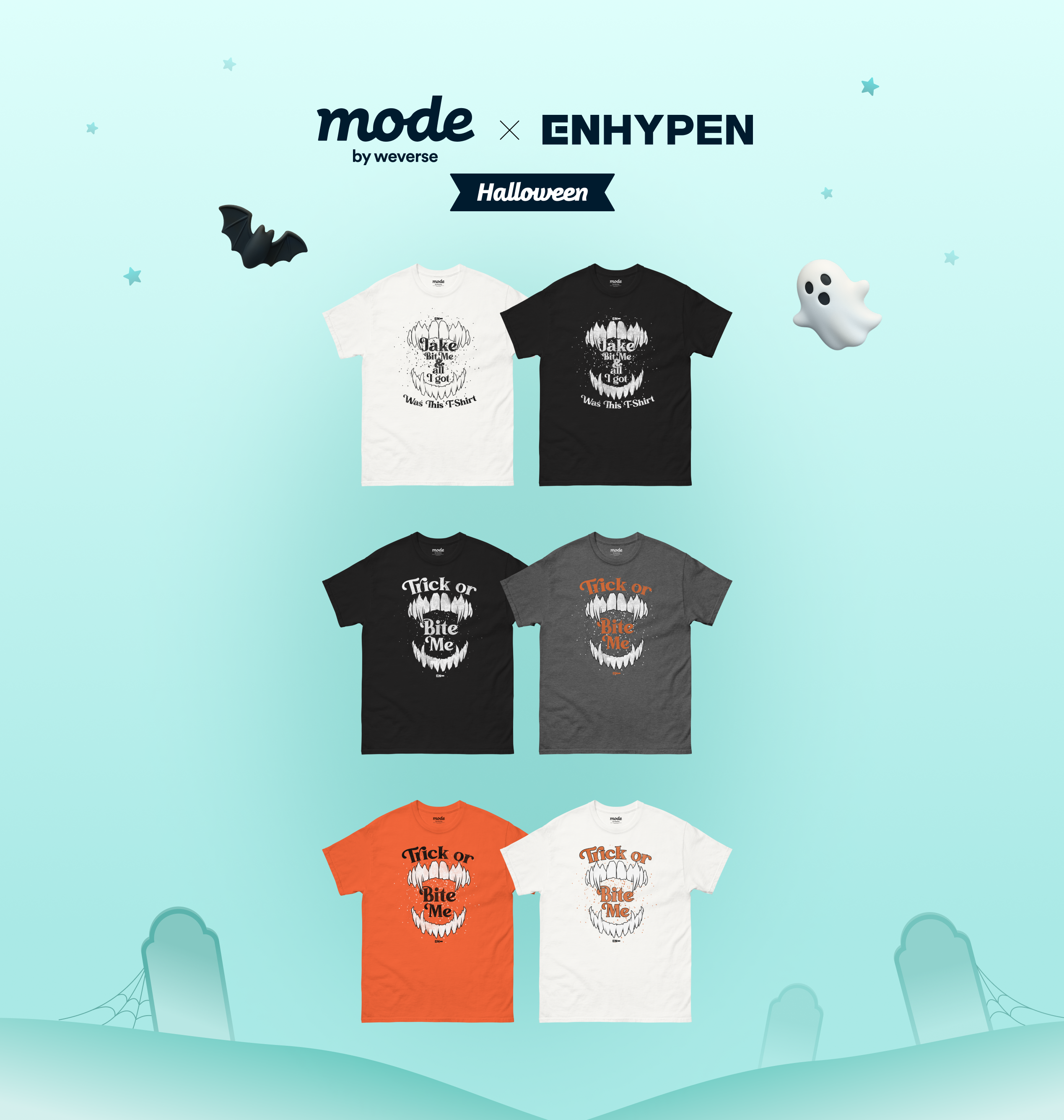 This Halloween, we’re excited to launch Weverse Mode featuring our first artist release: ENHYPEN. Celebrate the season of creativity and individuality by expressing your unique style through this specially crafted collection. Each item is made-to-order, ensuring a personalized and intentional experience. This made-to-order model gives our US fans the opportunity to purchase as many items as they wish. Each piece is individually produced to reflect your personal connection with the artist, offering a thoughtful merchandise experience.