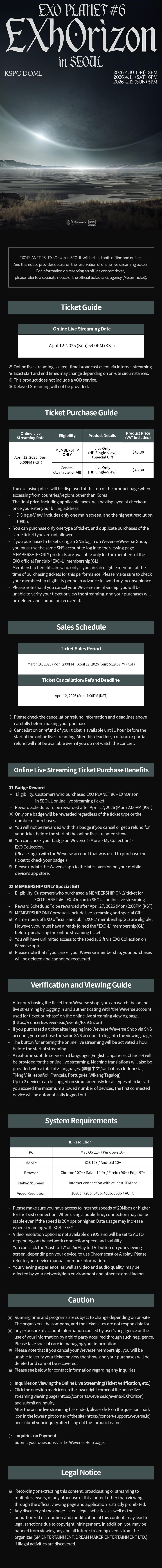 [Weverse Global] EXO PLANET #6 - EXhOrizon in SEOUL Online Live Streaming Ticket Purchase Notice