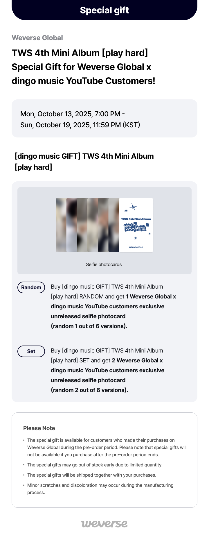 [Weverse Global] TWS 4th Mini Album [play hard] Special Gift for Weverse Global x dingo music YouTube Customers!N