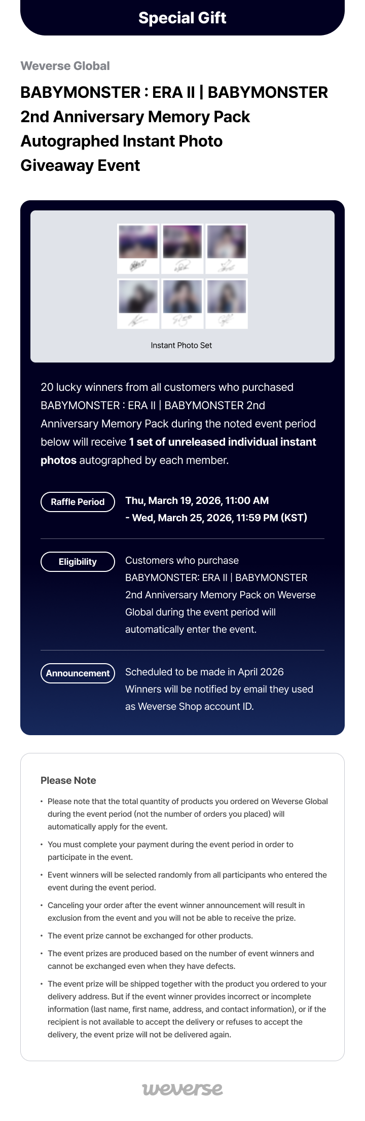 BABYMONSTER : ERA II | BABYMONSTER 2nd Anniversary Memory Pack Autographed Instant Photo Giveaway Event