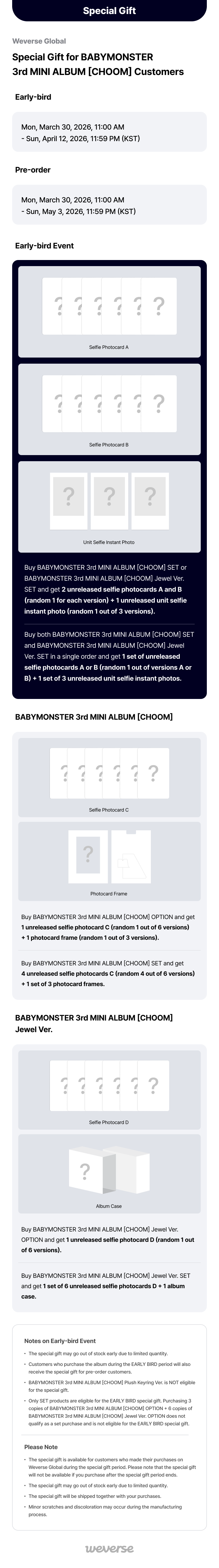 [Weverse Global] Special Gift for BABYMONSTER 3rd MINI ALBUM [CHOOM] CustomersN