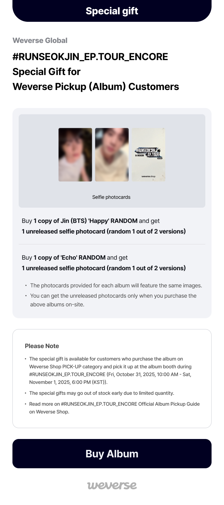 #RUNSEOKJIN_EP.TOUR_ENCORE Special Gift for Weverse Pickup (Album) CustomersN