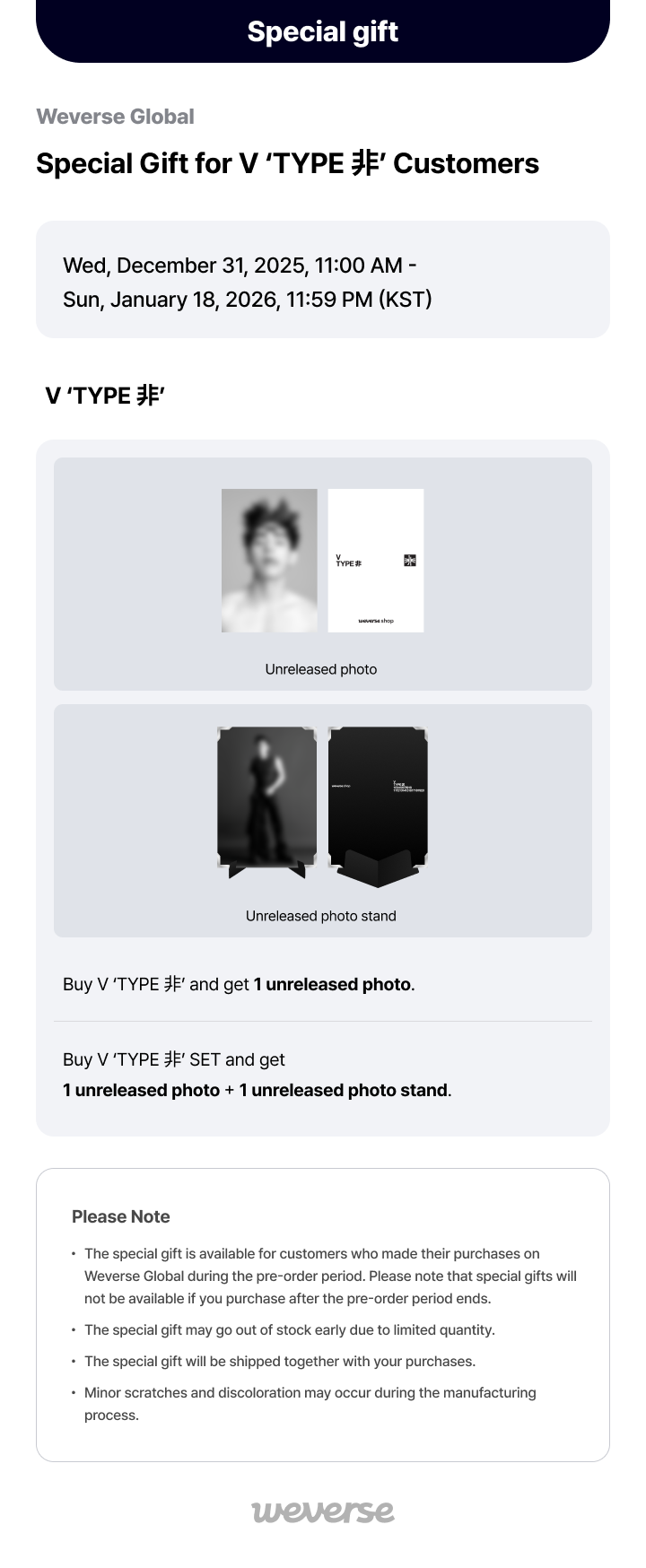 [Weverse Global] Special Gift for V ‘TYPE 非’ Pre-order Customers