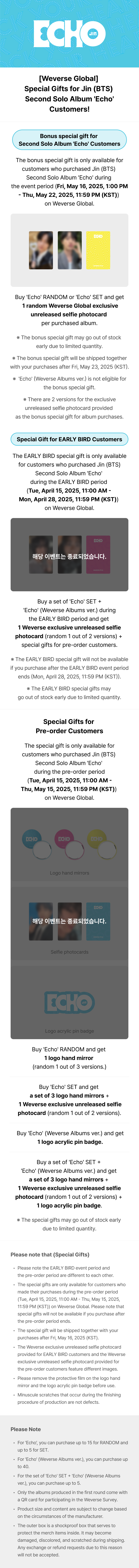 [Weverse Global] Special Gifts for Jin (BTS) Second Solo Album 'Echo' Customers! (2025.05.16 Updated)