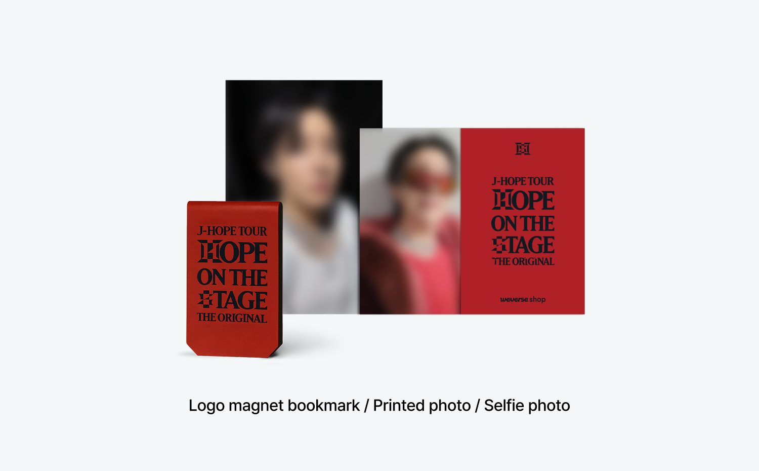 - Buy j-hope Tour ‘HOPE ON THE STAGE’ The Original SET and get 1 unreleased selfie photo + 1 logo magnet bookmark + 1 additional unreleased printed photo.