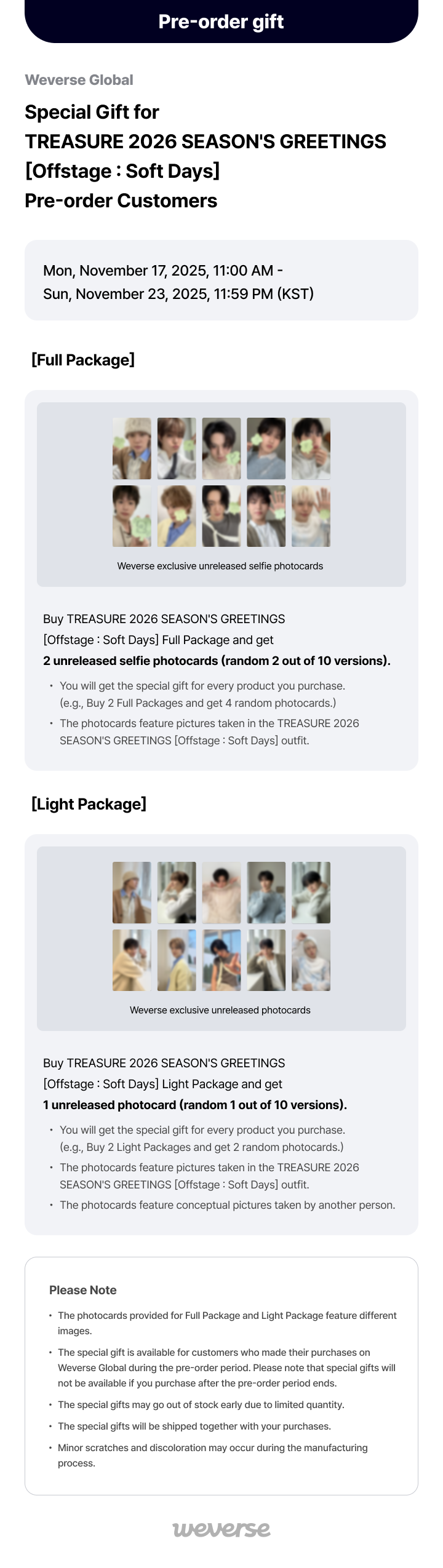 [Weverse Global] Special Gift for TREASURE 2026 SEASON'S GREETINGS [Offstage : Soft Days] Pre-order Customers