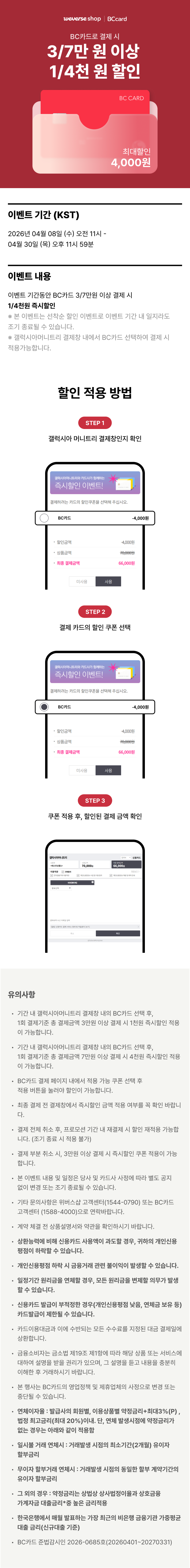 Weverse X BC카드 4월 즉시할인 프로모션 안내