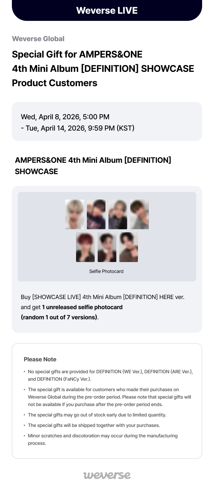 [Weverse Global] Special Gift for AMPERS&ONE 4th Mini Album [DEFINITION] SHOWCASE Product Customers