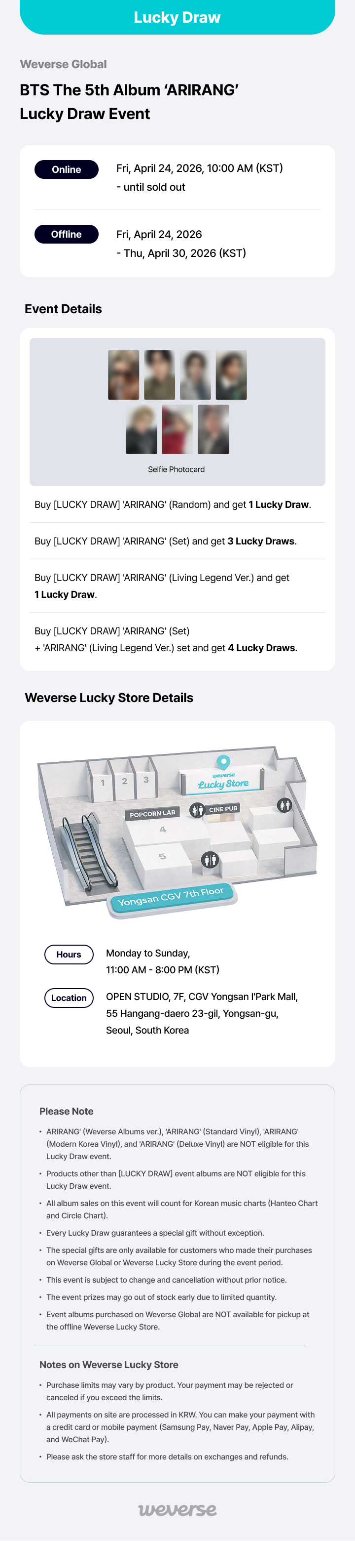 [Weverse Global] BTS The 5th Album ‘ARIRANG’ 2nd LUCKY DRAW EVENTN