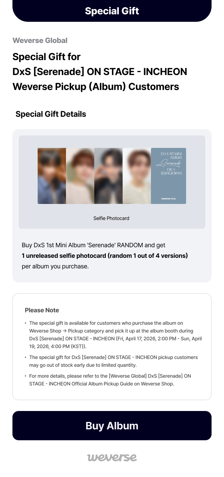DxS [Serenade] ON STAGE_INCHEON Special Gift for Weverse Pickup (Album) Customers!