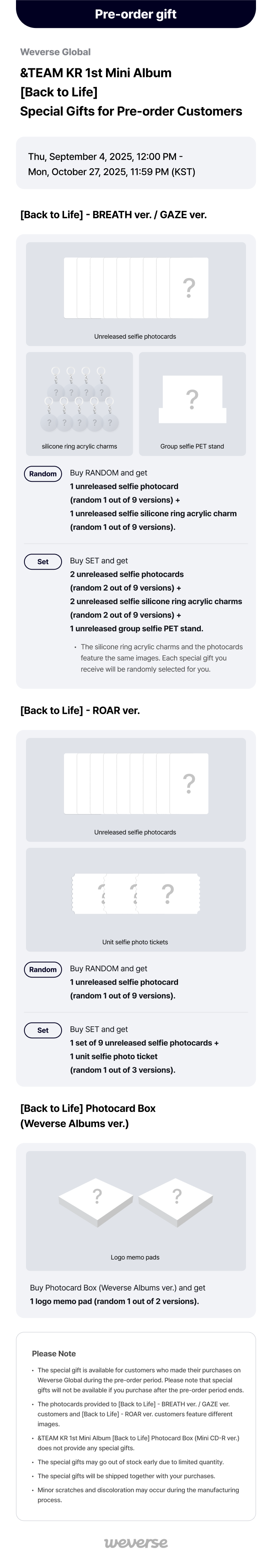 [Weverse Global] Special Gifts for &TEAM KR 1st Mini Album [Back to Life] Pre-order Customers!