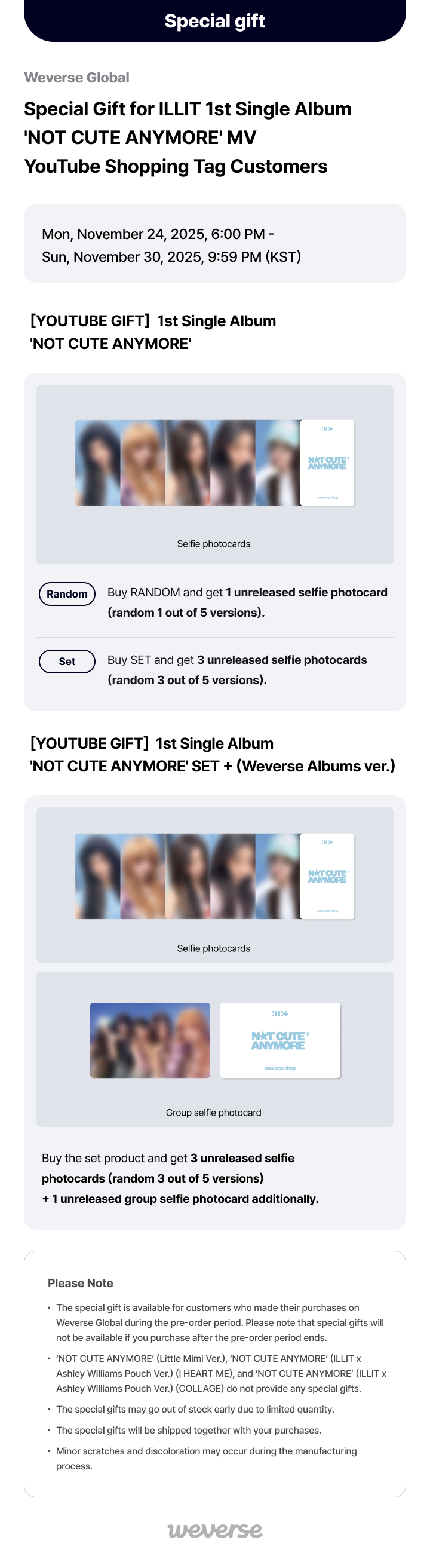 [Weverse Global] Special Gift for ILLIT 1st Single Album 'NOT CUTE ANYMORE' MV YouTube Shopping Tag Customers