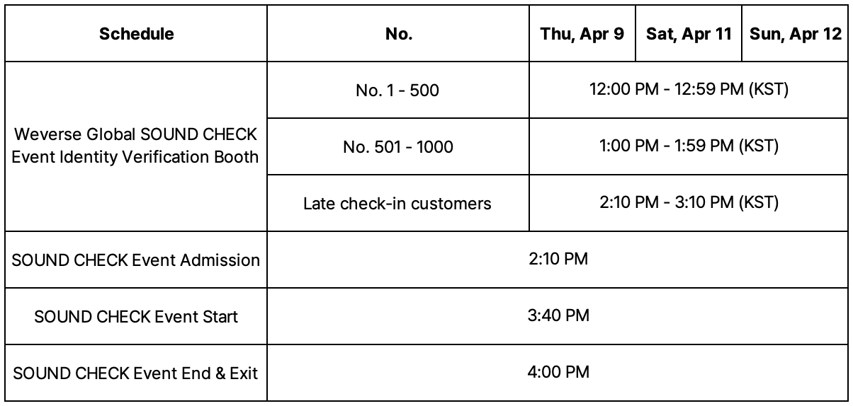 2. Weverse Global SOUND CHECK event winners will be guided to the exit once the SOUND CHECK event concludes. Re-entry will be required for those holding tickets to the main performance.