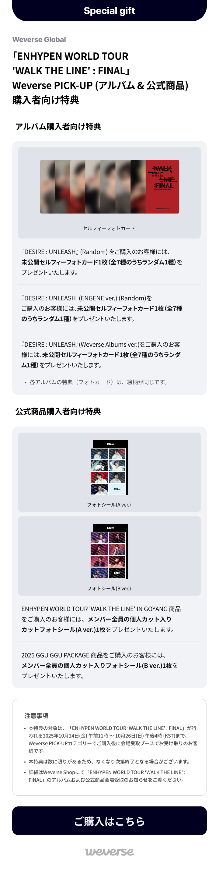 ENHYPEN WORLD TOUR ‘WALK THE LINE’ : FINAL Weverse PICK-UP(アルバム & 公式商品)購入者向け特典N
