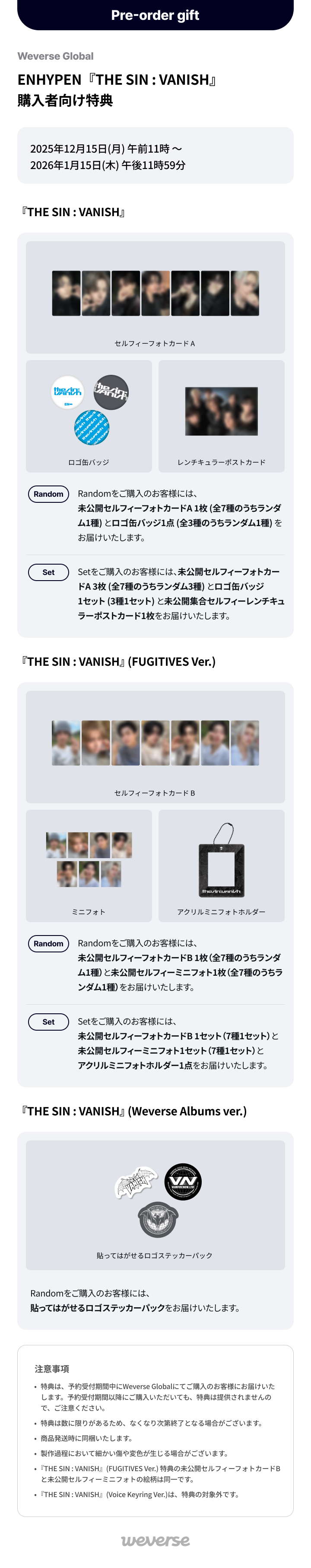 [Weverse Global] ENHYPEN『THE SIN : VANISH』購入者向け特典