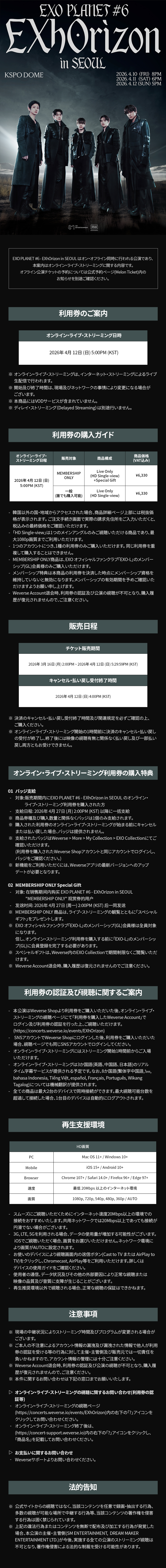 [Weverse Global] EXO PLANET #6 - EXhOrizon in SEOUL オンライン・ライブ・ストリーミング利用券の詳細に関するご案内