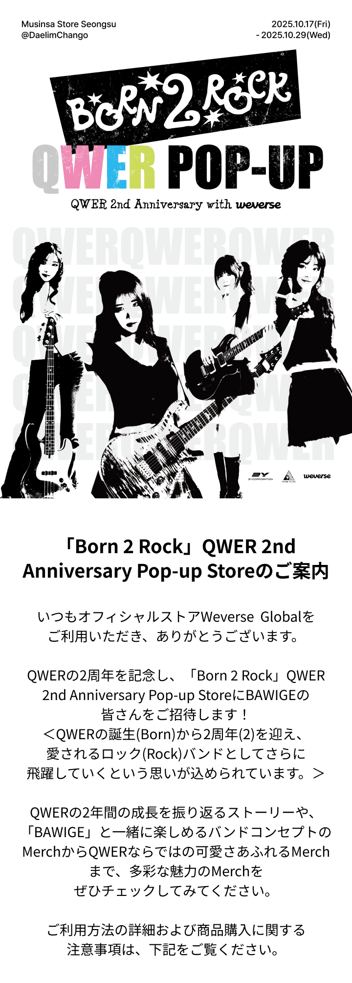 [Weverse Global] 「Born 2 Rock」QWER 2nd Anniversary Pop-up Storeのご案内N