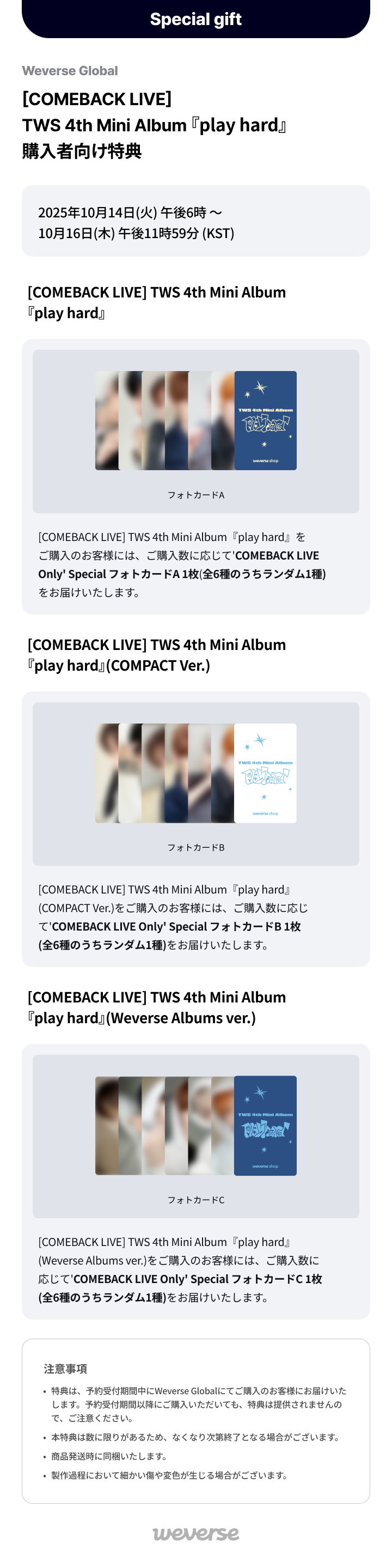 [Weverse Global] [COMEBACK LIVE] TWS 4th Mini Album『play hard』購入者向け特典N
