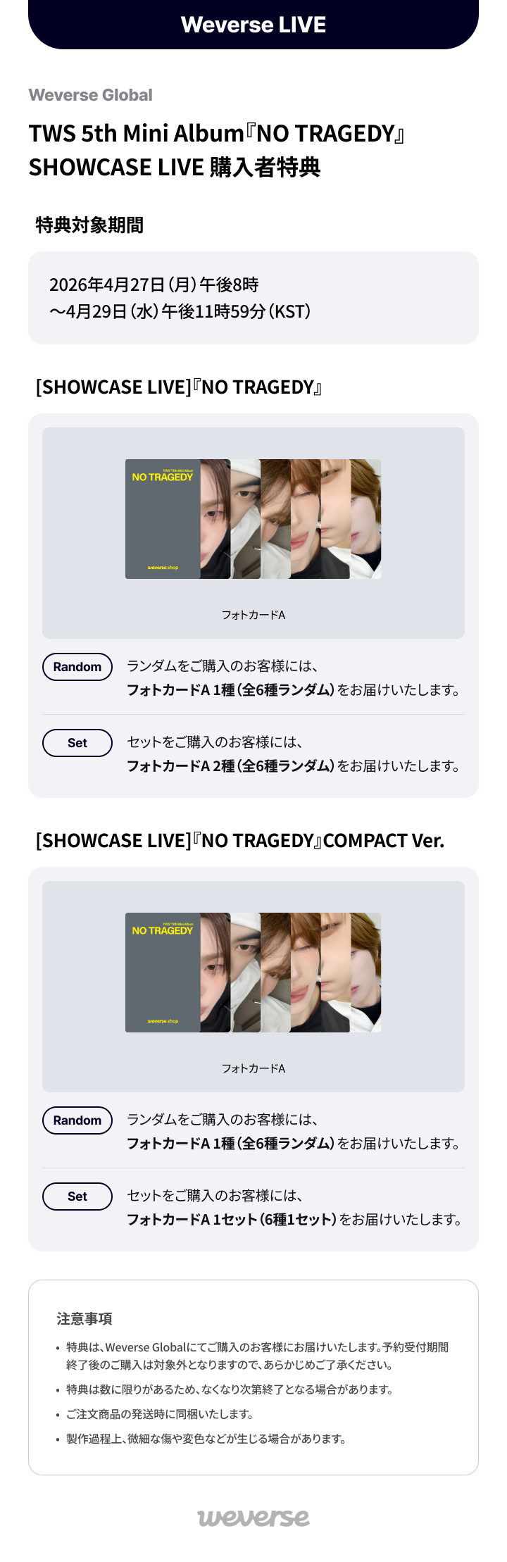 [Weverse Global] TWS 5th Mini Album『NO TRAGEDY』SHOWCASE LIVE 購入者特典N