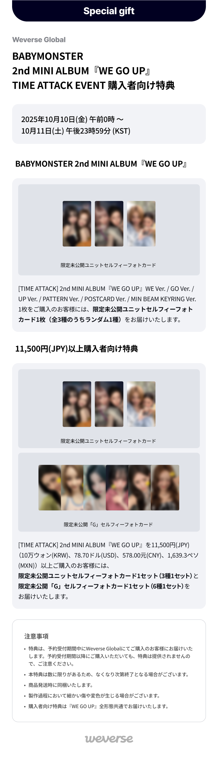 [Weverse Global] BABYMONSTER 2nd MINI ALBUM『WE GO UP』TIME ATTACK EVENT 購入者向け特典