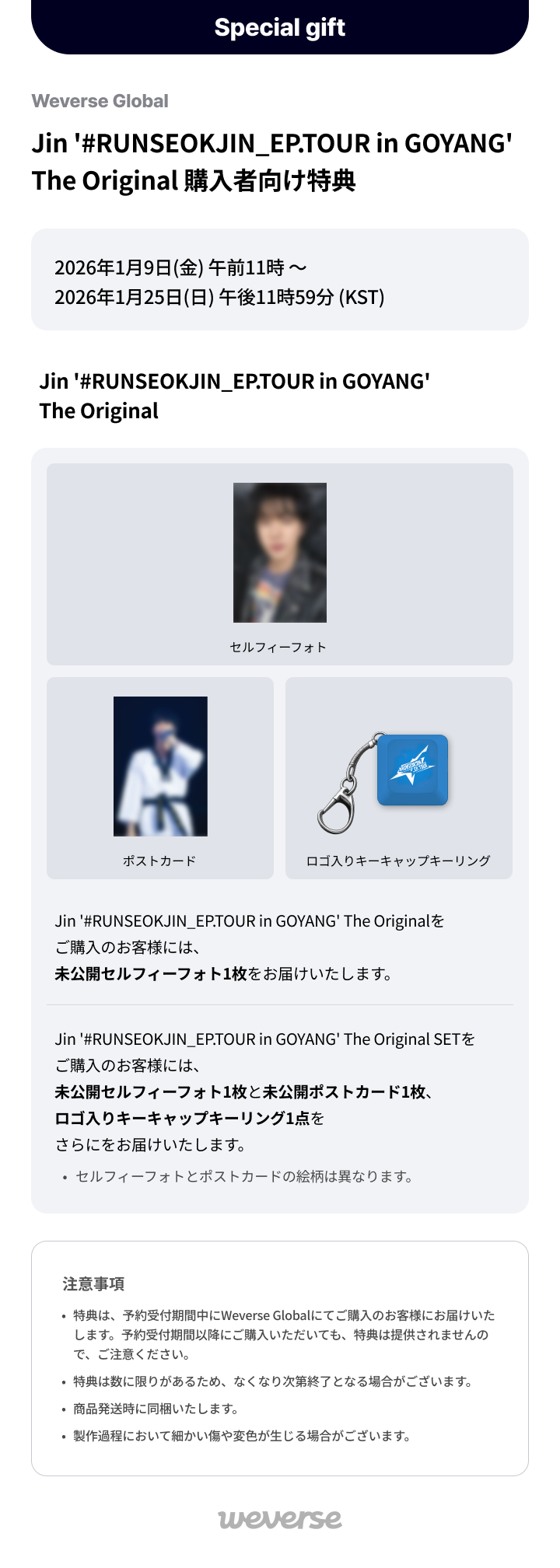 [Weverse Global] Jin '#RUNSEOKJIN_EP.TOUR in GOYANG' The Original 予約購入者向け特典