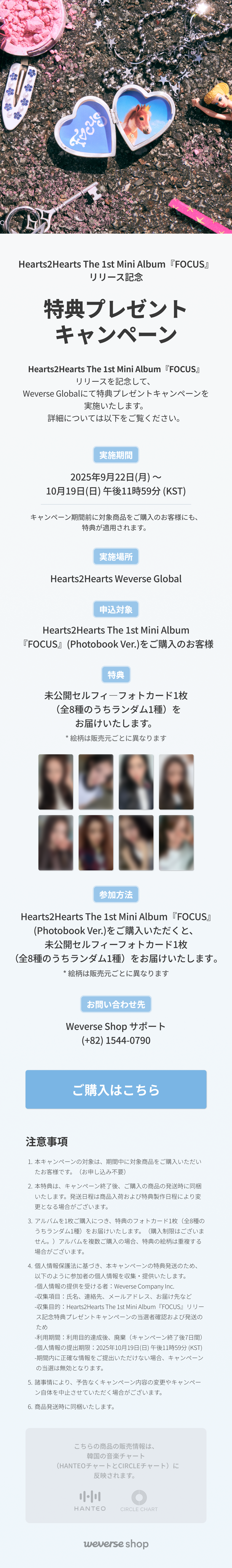 [Weverse Global] Hearts2Hearts The 1st Mini Album『FOCUS』リリース記念特典プレゼントキャンペーン