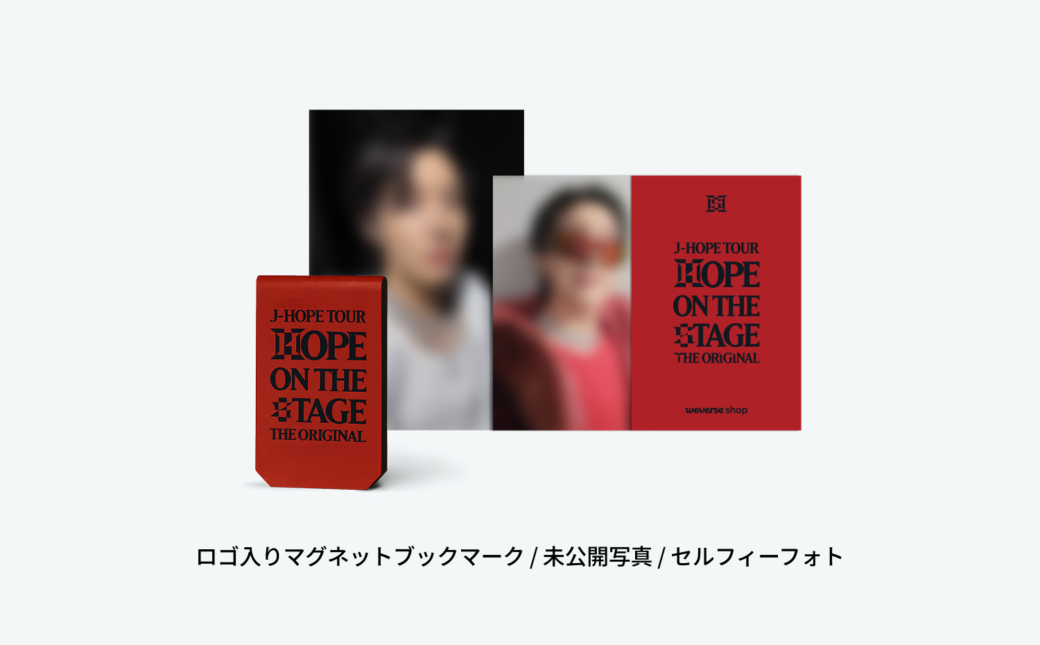 -j-hope Tour ‘HOPE ON THE STAGE’ The Originalをご購入のお客様には、未公開セルフィーフォト1枚とロゴ入りマグネットブックマーク1点をお届けいたします。