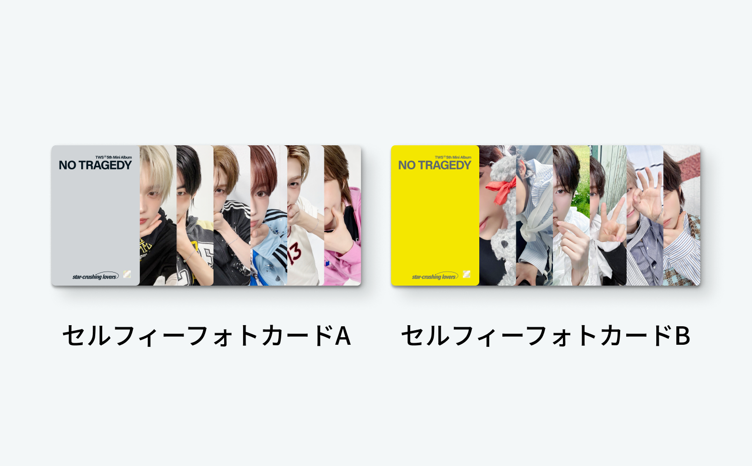 - 『NO TRAGEDY』COMPACT Ver. (Set):フォトカードB 1セット(6種1セット)をプレゼントいたします。