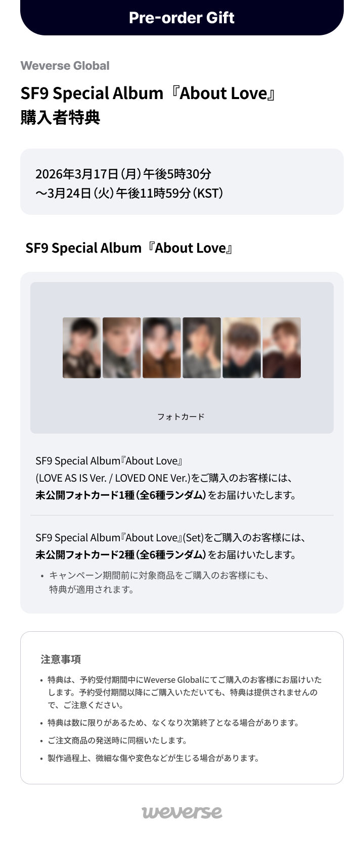 [Weverse Global] SF9 Special Album『About Love』予約販売のお知らせ (26.03.19 updated)