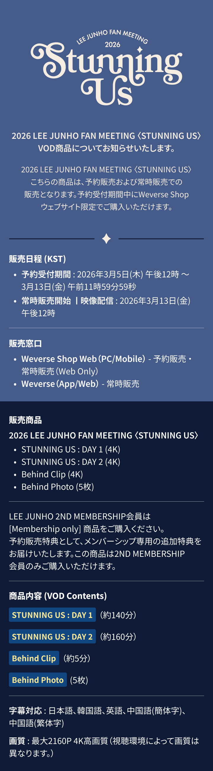 [Weverse Global] 2026 LEE JUNHO FAN MEETING 〈STUNNING US〉VOD商品予約販売のご案内