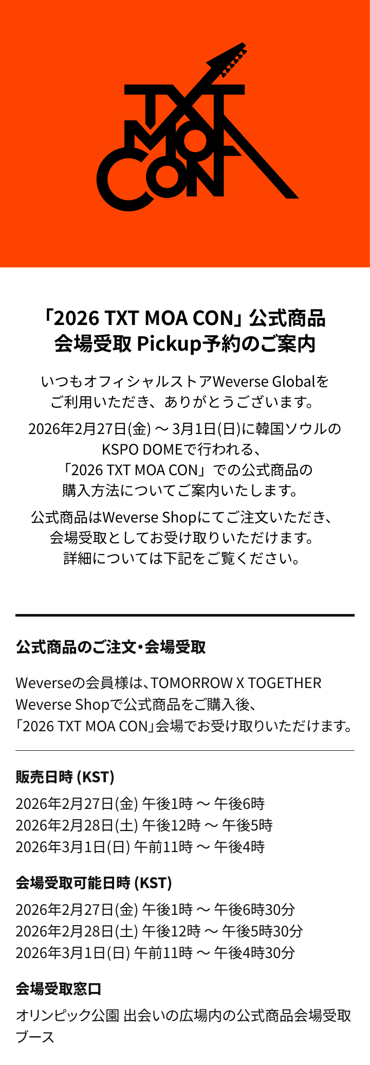 [Weverse Global]「2026 TXT MOA CON」公式商品会場受取 Pickup予約のご案内