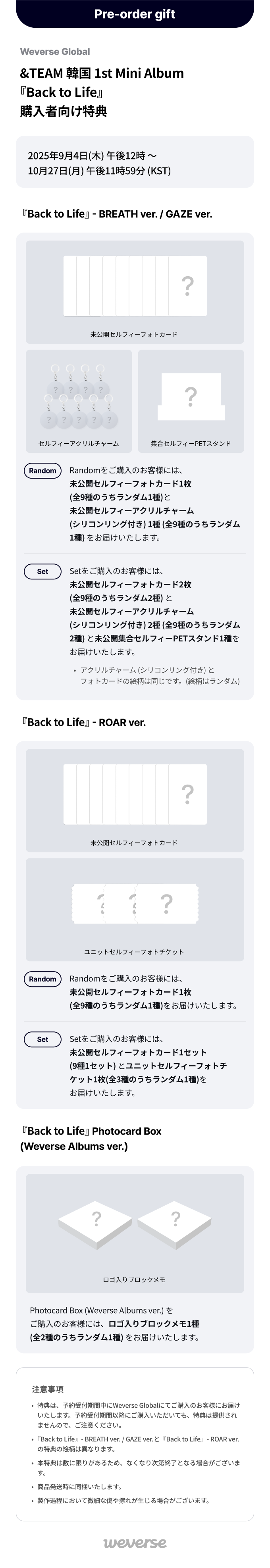 [Weverse Global] &TEAM 韓国 1st Mini Album『Back to Life』予約購入者向け特典