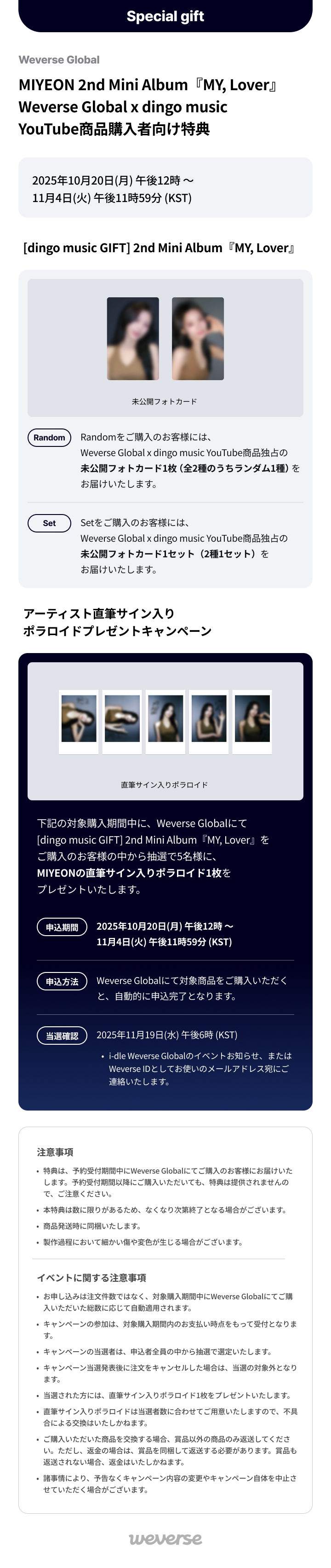 [Weverse Global] MIYEON 2nd Mini Album『MY, Lover』 Weverse Global x dingo music YouTube商品購入者向け特典