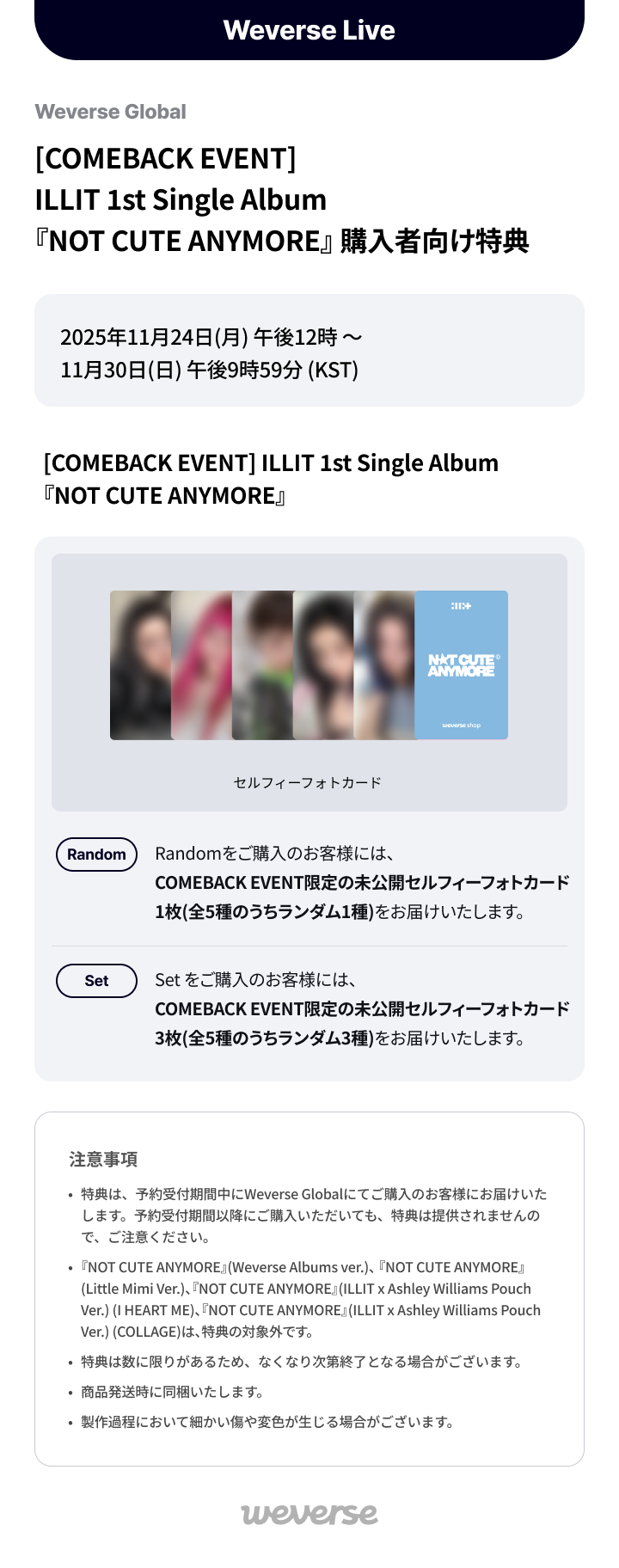 [Weverse Global] [COMEBACK EVENT] ILLIT 1st Single Album『NOT CUTE ANYMORE』購入者向け特典