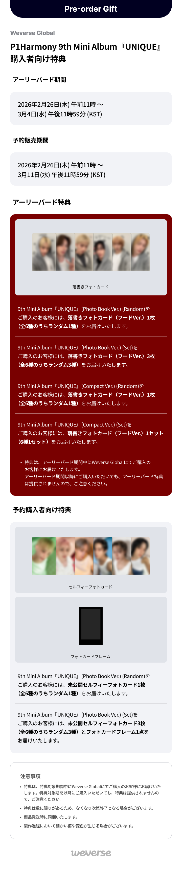 [Weverse Global] P1Harmony 9th Mini Album『UNIQUE』購入者向け特典