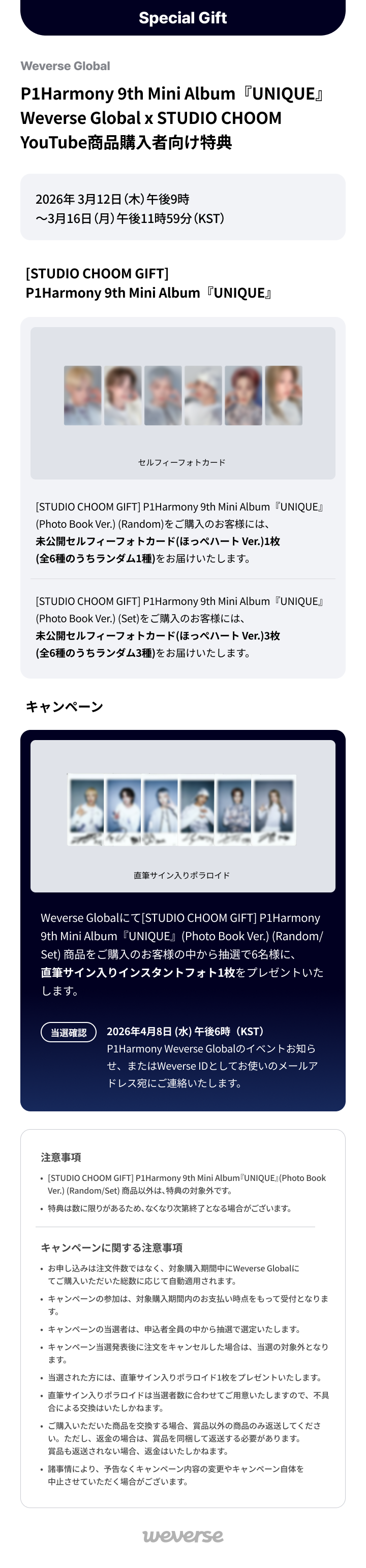 [Weverse Global] P1Harmony 9th Mini Album『UNIQUE』 Weverse Global x STUDIO CHOOM YouTube商品購入者向け特典