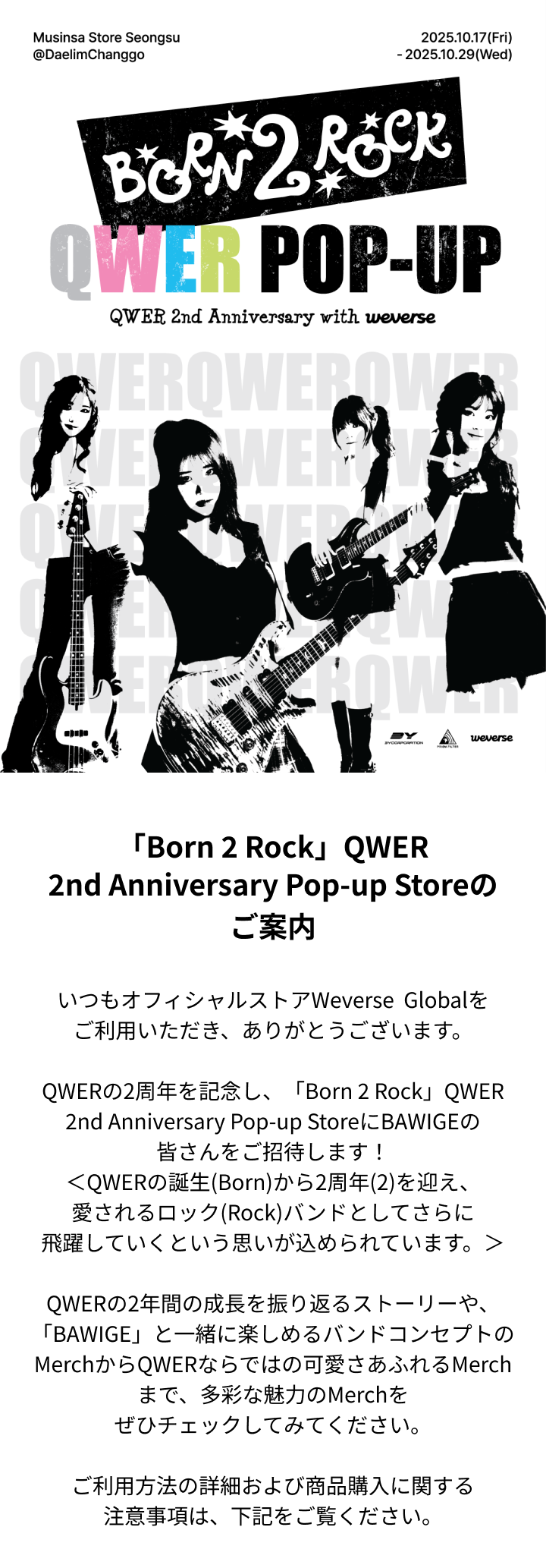 [Weverse Global] 「Born 2 Rock」QWER 2nd Anniversary Pop-up Storeのご案内