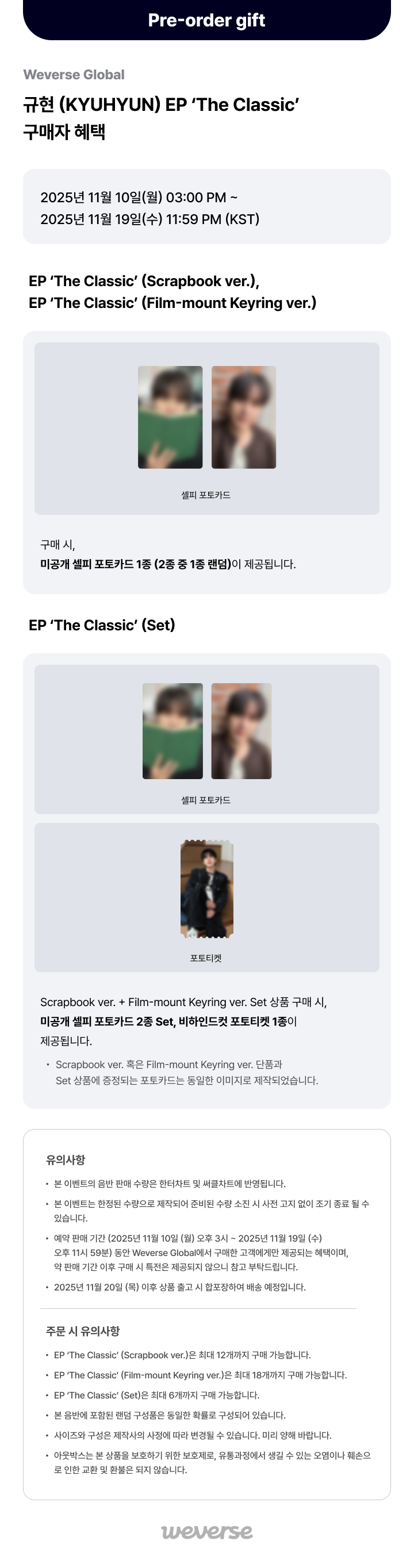 [Weverse Global] 규현 (KYUHYUN) EP ‘The Classic’ 구매자 혜택