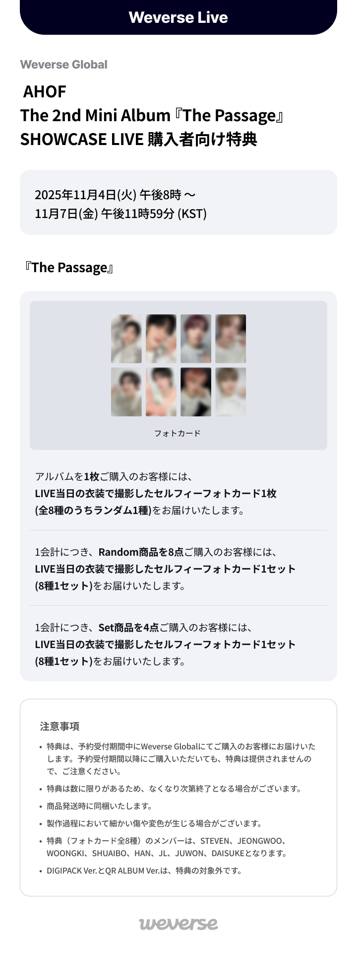[Weverse Global] AHOF The 2nd Mini Album『The Passage』SHOWCASE LIVE 購入者向け特典 (25.11.06 Updated)