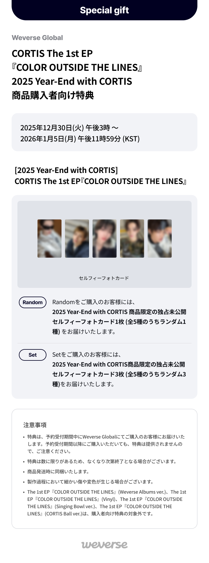 [Weverse Global] CORTIS The 1st EP『COLOR OUTSIDE THE LINES』 2025 Year-End with CORTIS 商品購入者向け特典