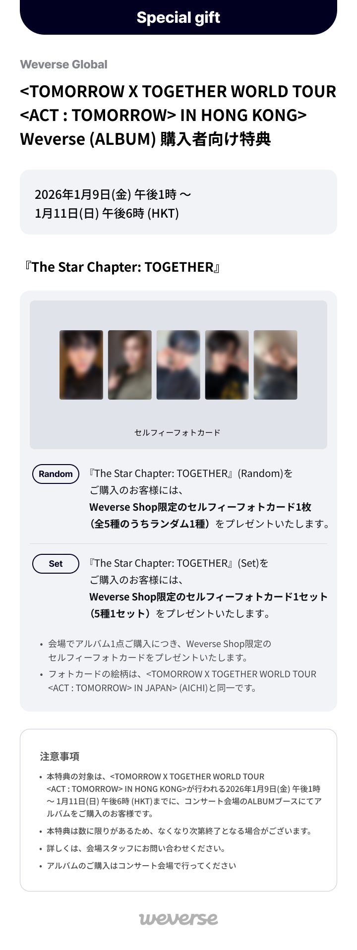 <TOMORROW X TOGETHER WORLD TOUR <ACT : TOMORROW> IN HONG KONG> Weverse (ALBUM) 購入者向け特典