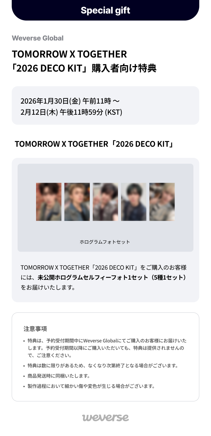 [Weverse Global] TOMORROW X TOGETHER '2026 DECO KIT' 予約購入者向け特典