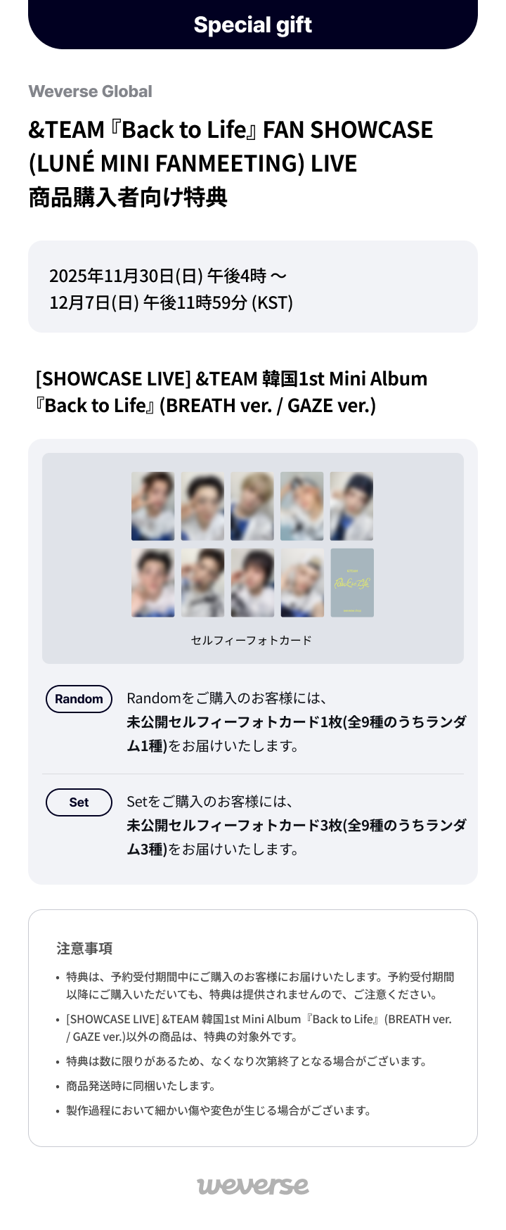 [Weverse Global] &TEAM『Back to Life』FAN SHOWCASE (LUNÉ MINI FANMEETING) LIVE 商品購入者向け特典