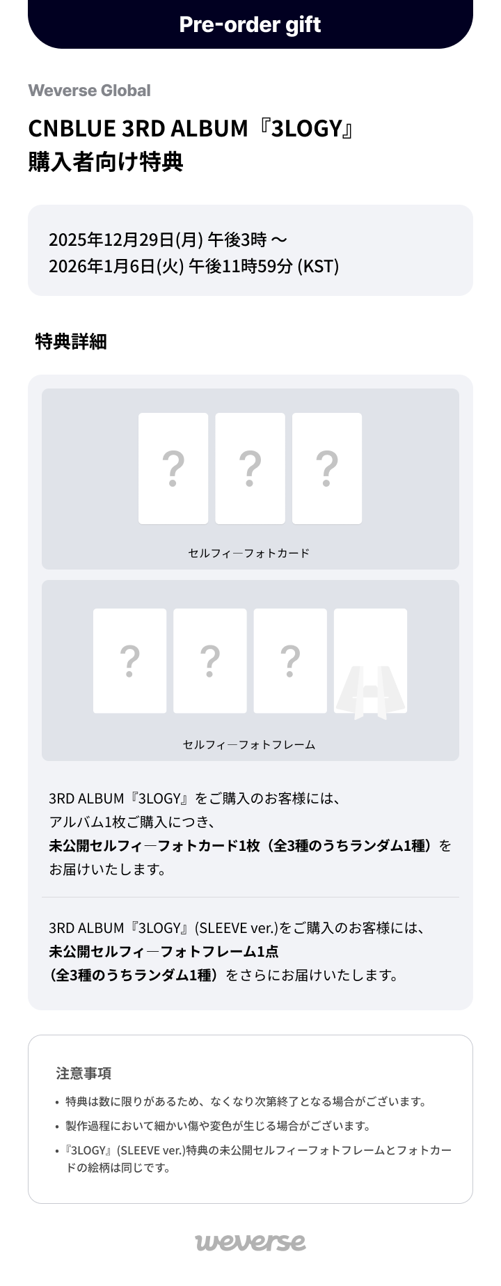[Weverse Global] CNBLUE 3RD ALBUM『3LOGY』購入者向け特典