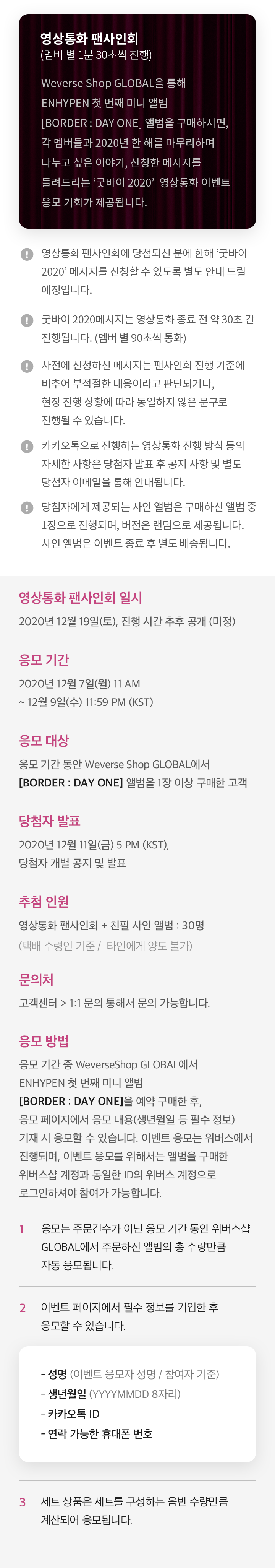 ENHYPEN 첫 번째 미니앨범 [BORDER : DAY ONE] 구매자 대상 2회차 ‘굿바이 2020’ 영상통화 팬사인회