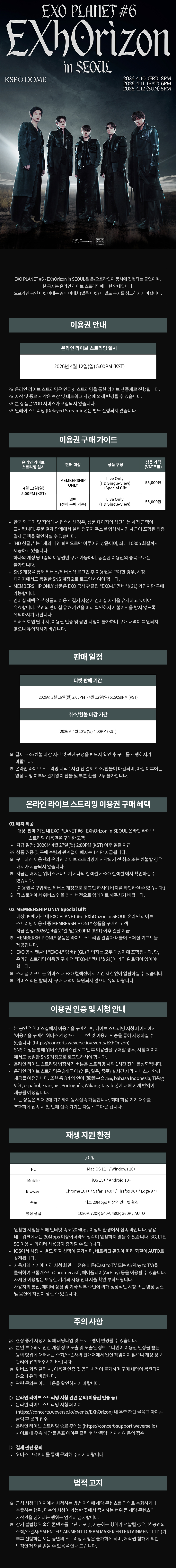[Weverse Global] EXO PLANET #6 - EXhOrizon in SEOUL 온라인 라이브 스트리밍 이용권 상세 안내