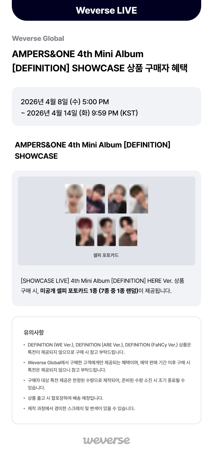 [Weverse Global] AMPERS&ONE 4th Mini Album [DEFINITION] SHOWCASE 상품 구매자 혜택