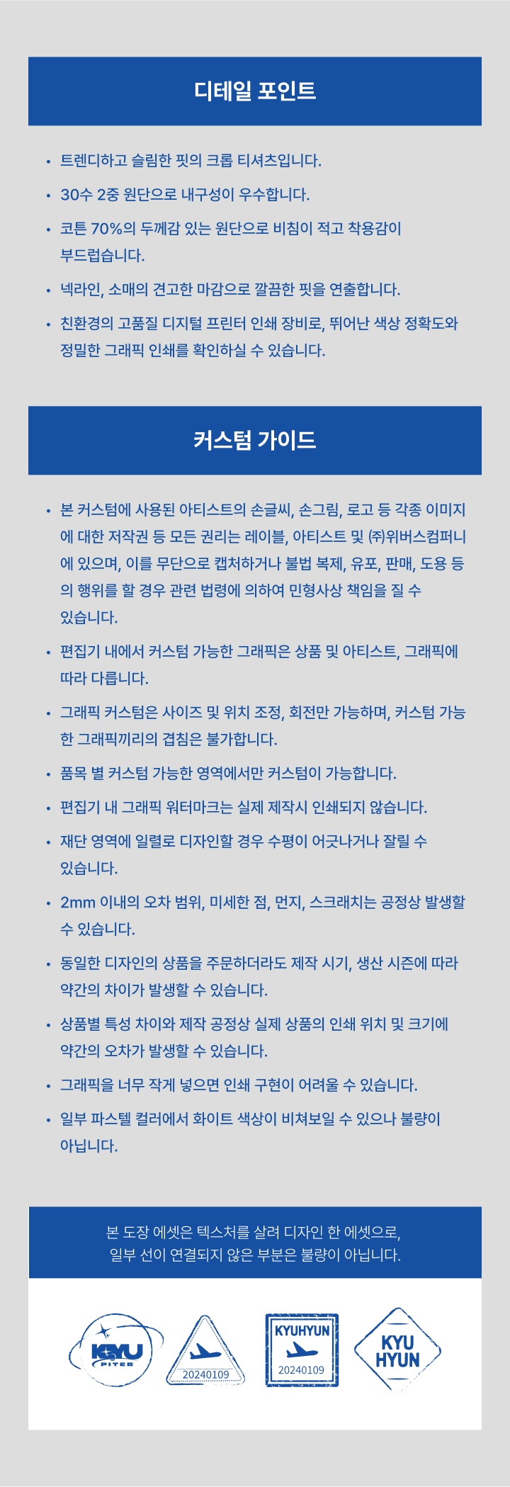 - 상품별 특성 차이와 제작 공정상 실제 상품의 인쇄 위치 및 크기에 약간의 오차가 발생할 수 있습니다.