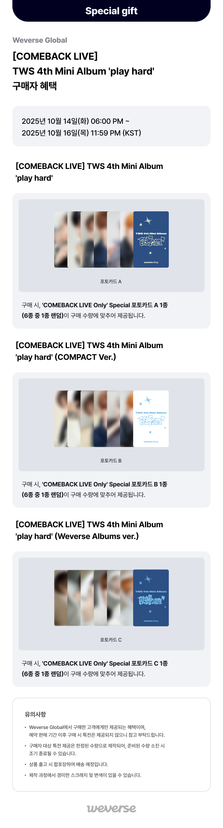 [Weverse Global] [COMEBACK LIVE] TWS 4th Mini Album 'play hard' 구매자 혜택
